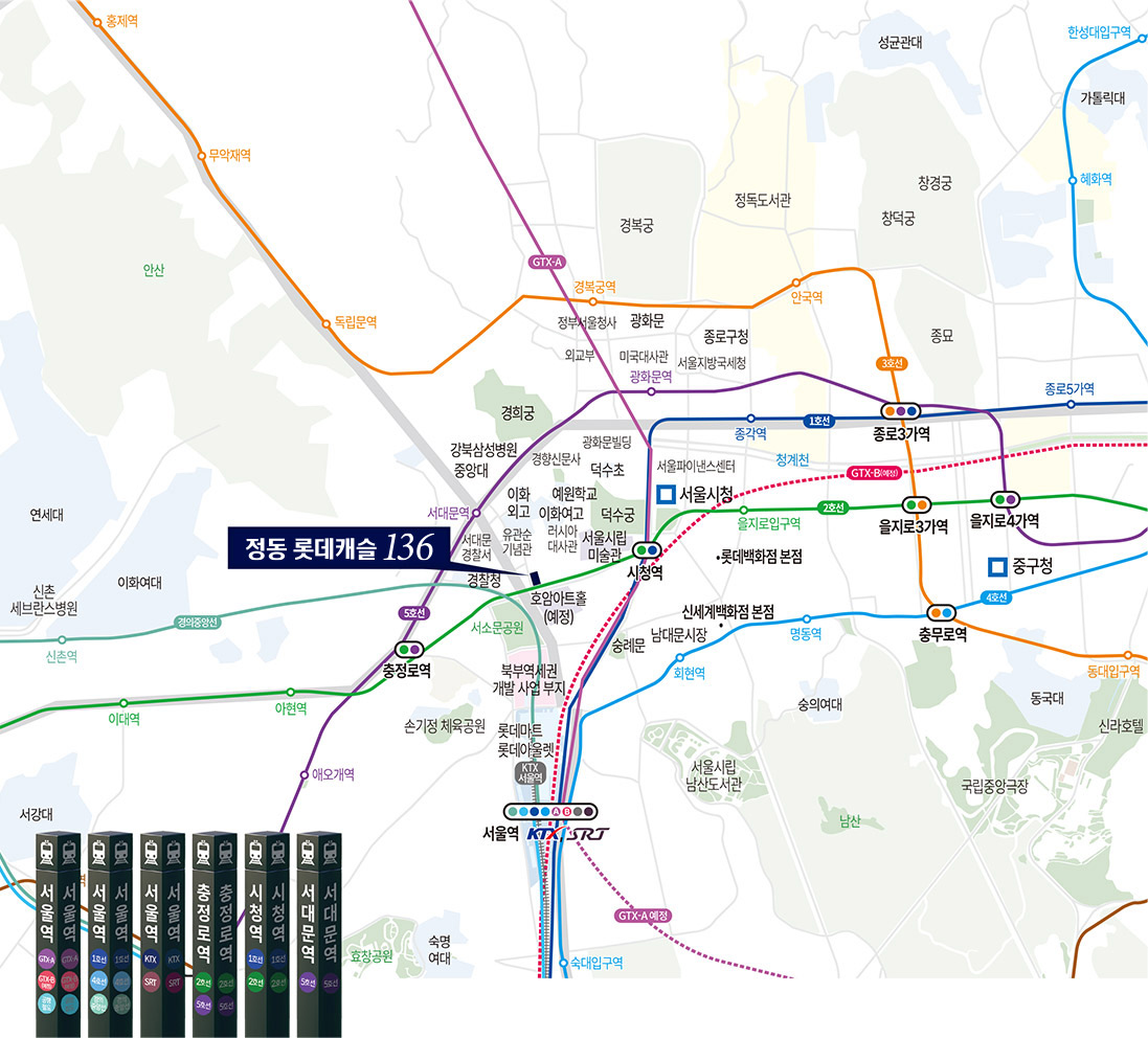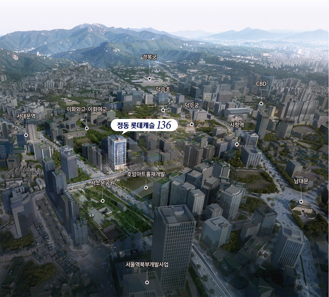 시청역(1·2호선)과 서대문역(5호선)의 트리플 역세권에 위치하며